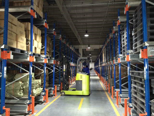 穿梭車貨架系統(tǒng)的使用非常方便,首先用叉車將穿梭車放入軌道的前端,軌道的截面為傾斜狀,方便將小車置入,然后將貨物放在軌道上的初始位置,這時(shí)操作遙控器按下自動(dòng)入庫鍵即可將帶有托盤的貨物運(yùn)入巷道深處完成存儲(chǔ)的動(dòng)作。取貨時(shí)同時(shí)將小車置入軌道的初始位,操作遙控器按下自動(dòng)出庫鍵,穿梭車將貨物搬運(yùn)至軌道端頭,叉車將其取下,完成出庫動(dòng)作,然后轉(zhuǎn)向下一個(gè)通道作業(yè)。穿梭車還能夠自動(dòng)進(jìn)行A/B面切換,實(shí)現(xiàn)穿梭小車在軌道的兩端存取貨。